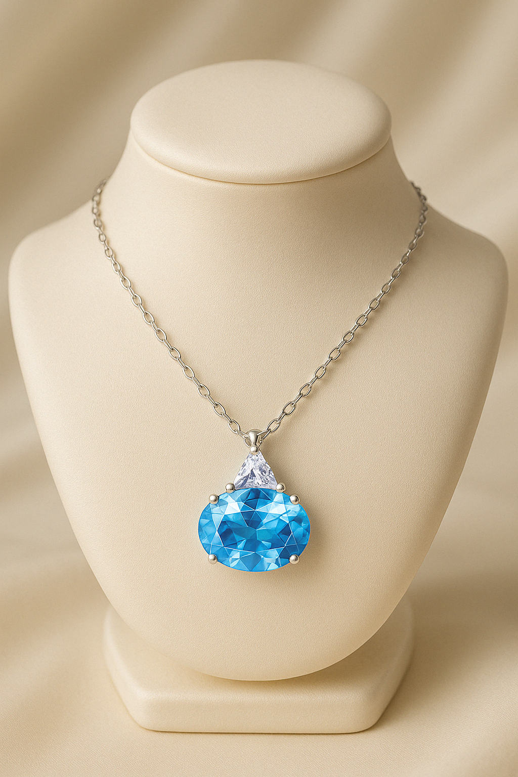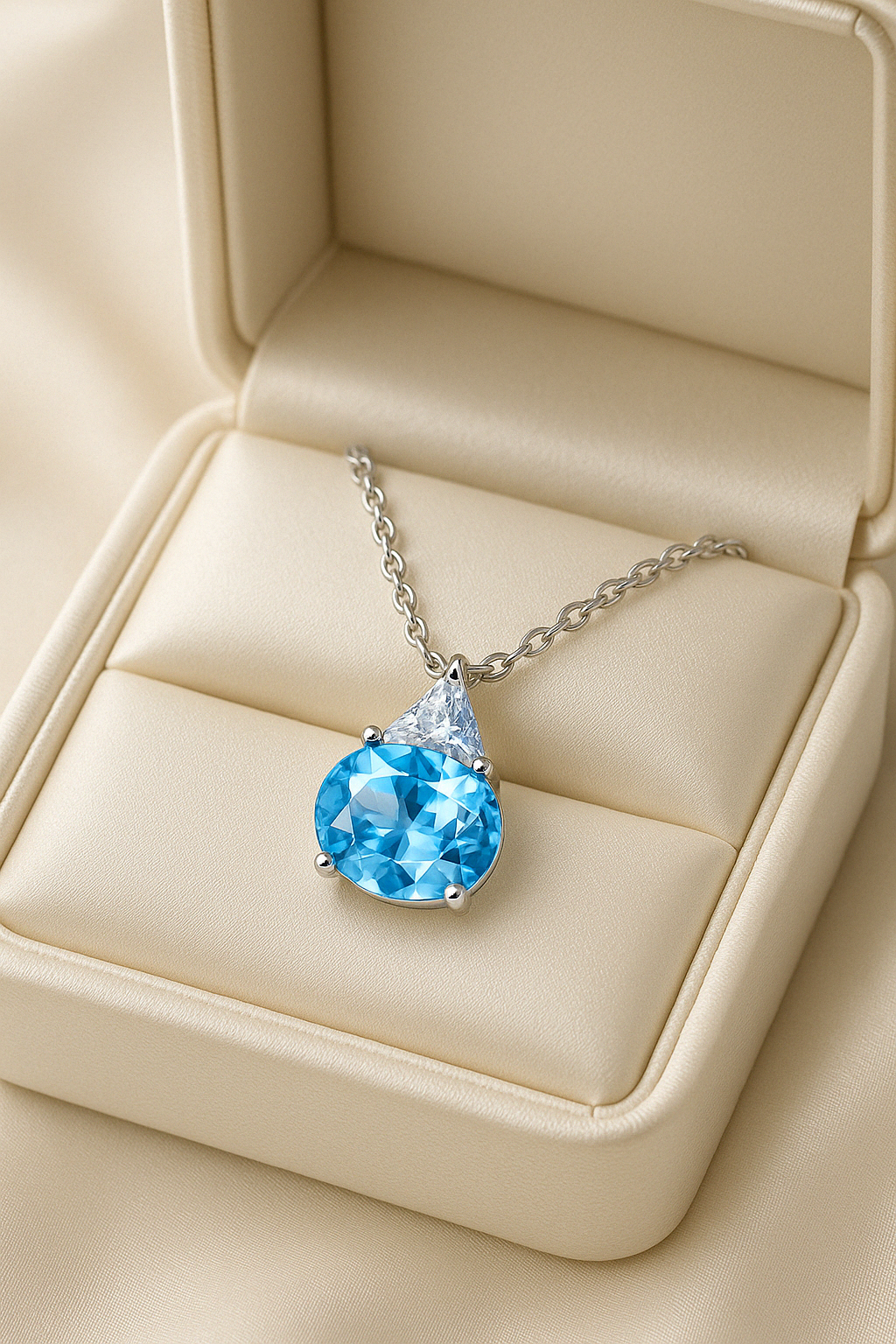 Suspended like a drop of sky, Ameira features a round-cut aquamarine framed by a graceful silver design that evokes the impression of a gem gently floating at the collarbone. Delicate yet striking, it captures the beauty of stillness and the radiance of clarity.
