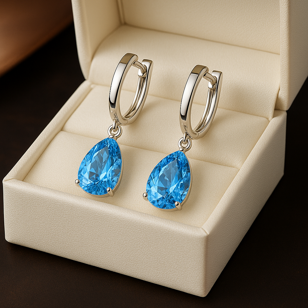 Matching the bold spirit of the Aithne necklace, these earrings feature teardrop aquamarines that glow like captured blue flame. Set in polished silver, their shape is both fluid and fierce—an elegant tribute to passion held in stillness.